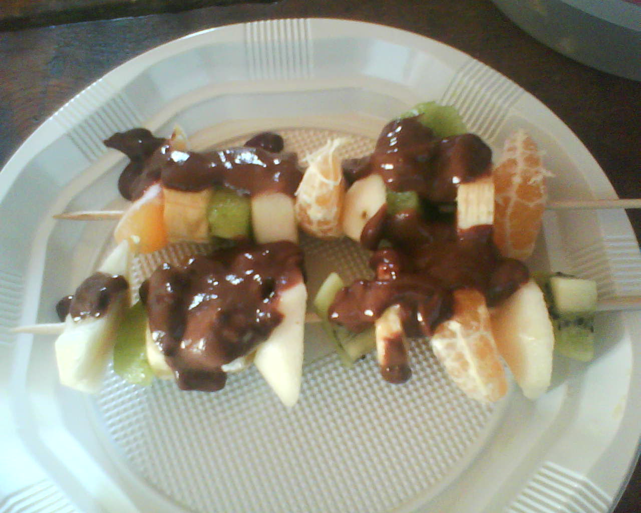 La gastronomica consitia en dur un postre per grups de 2 ó 3, i a l'hora un poquet de menjar per a tots(fora de concurs). Finalment soles Pablo i Luis varen dur postre, una "fondí" de fruites, (molt bona), això sí, si hagueren contat els altres plats, per a mi haurien guanyat les brochetes de Neus.